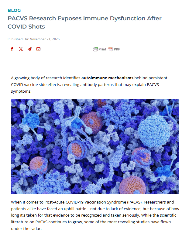 New research is clarifying Post-Acute COVID-19 Vaccination Syndrome (PACVS), confirming real, measurable immune changes in many affected individuals. Mantovani et al.'s recent study highlights autoantibodies linked to persistent symptoms after vaccination, helping define PACVS as a biological condition, not just a collection of complaints.