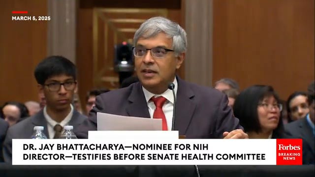 Did you see the opening remarks that Dr. Jay Bhattacharya made to the Senate Health Committee? It’s so worth a watch and only 5 minutes long (link below).
