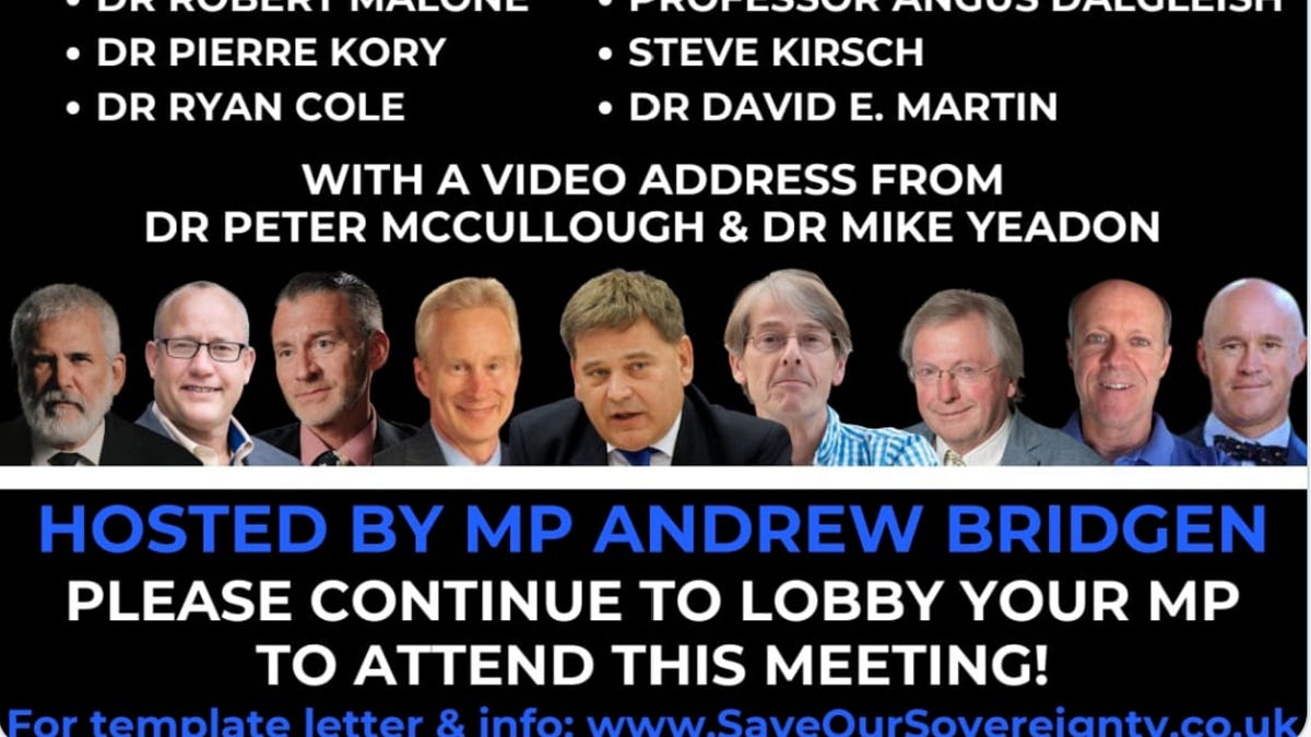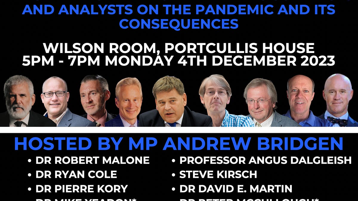 Expert Testimony at the UK parliment on December 4, 2023. Here is Dr. Kory’s post with a message from MP Andrew Bridgen before the event.