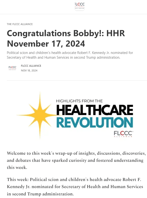 Read more: FLCCC Leadership & Senior Fellows Nominated for Potential HHS Roles by the Public