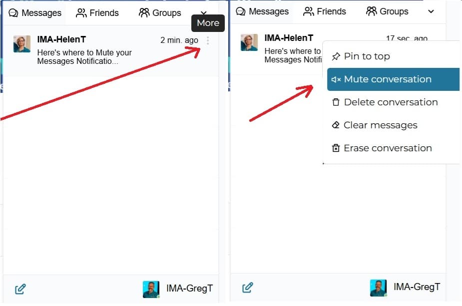 You can mute chat channels, group chats, or direct messages with the Mute feature. Click the three dots, and select Mute Conversation.