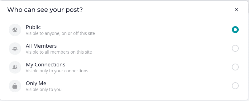 You can then adjust the visibility of your post. You can decide if you want anyone to see it, just your connections/followers, or a private note just for yourself.