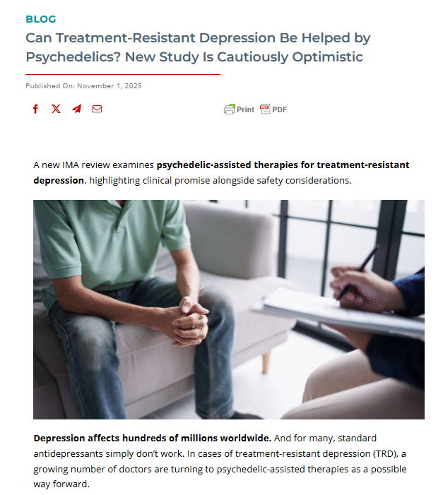 If you’ve seen our latest IMA review on psychedelic-assisted therapies for treatment-resistant depression, you know we’re diving deep into one of the most exciting—and sometimes controversial—frontiers in mental health care.