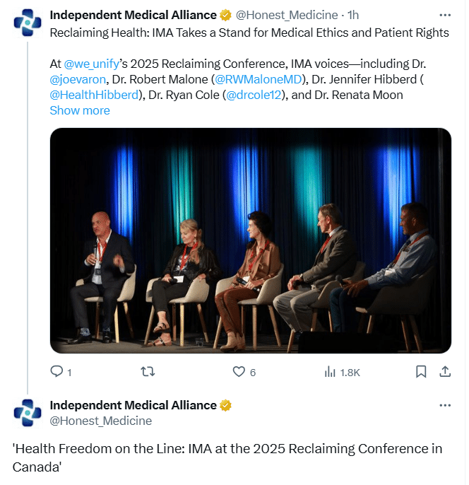 And also on our website here: Health Freedom on the Line: IMA at the 2025 Reclaiming Conference in Canada