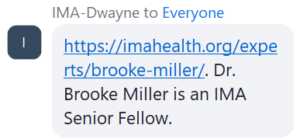 https://imahealth.org/experts/brooke-miller/ . Dr. Brooke Miller is an IMA Senior Fellow.