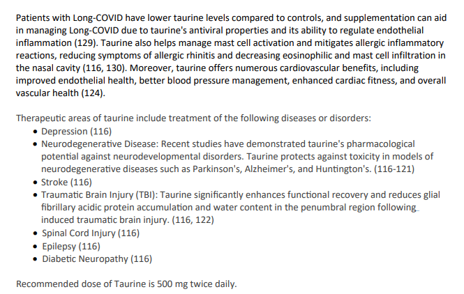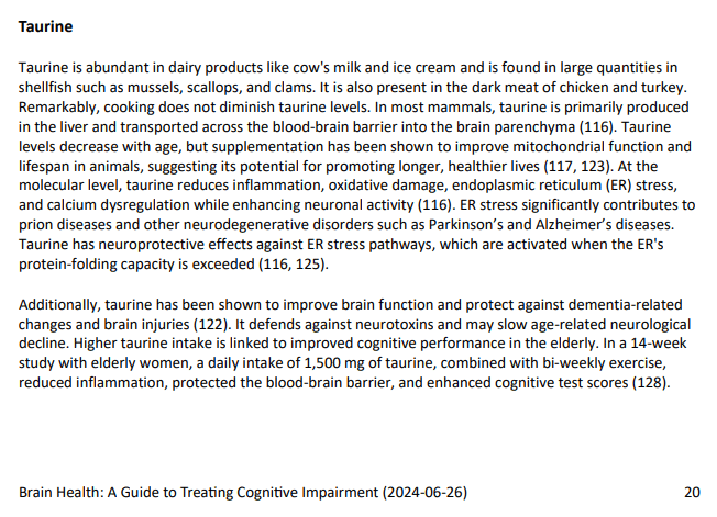 You had me going looking up Taurine on our website, and it gets a considerable mention on page 20 in the Brain Health Guide. Brain Health - Independent Medical Alliance. Sounds like a supplement we need to look into.