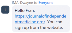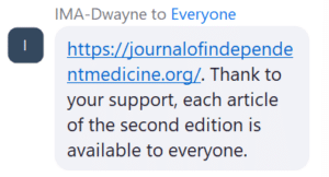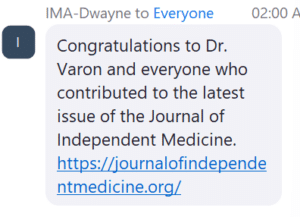 From IMA-Dwayne : Congratulations to Dr. Varon and everyone who contributed to the latest issue of the Journal of Independent Medicine. https://journalofindependentmedicine.org/